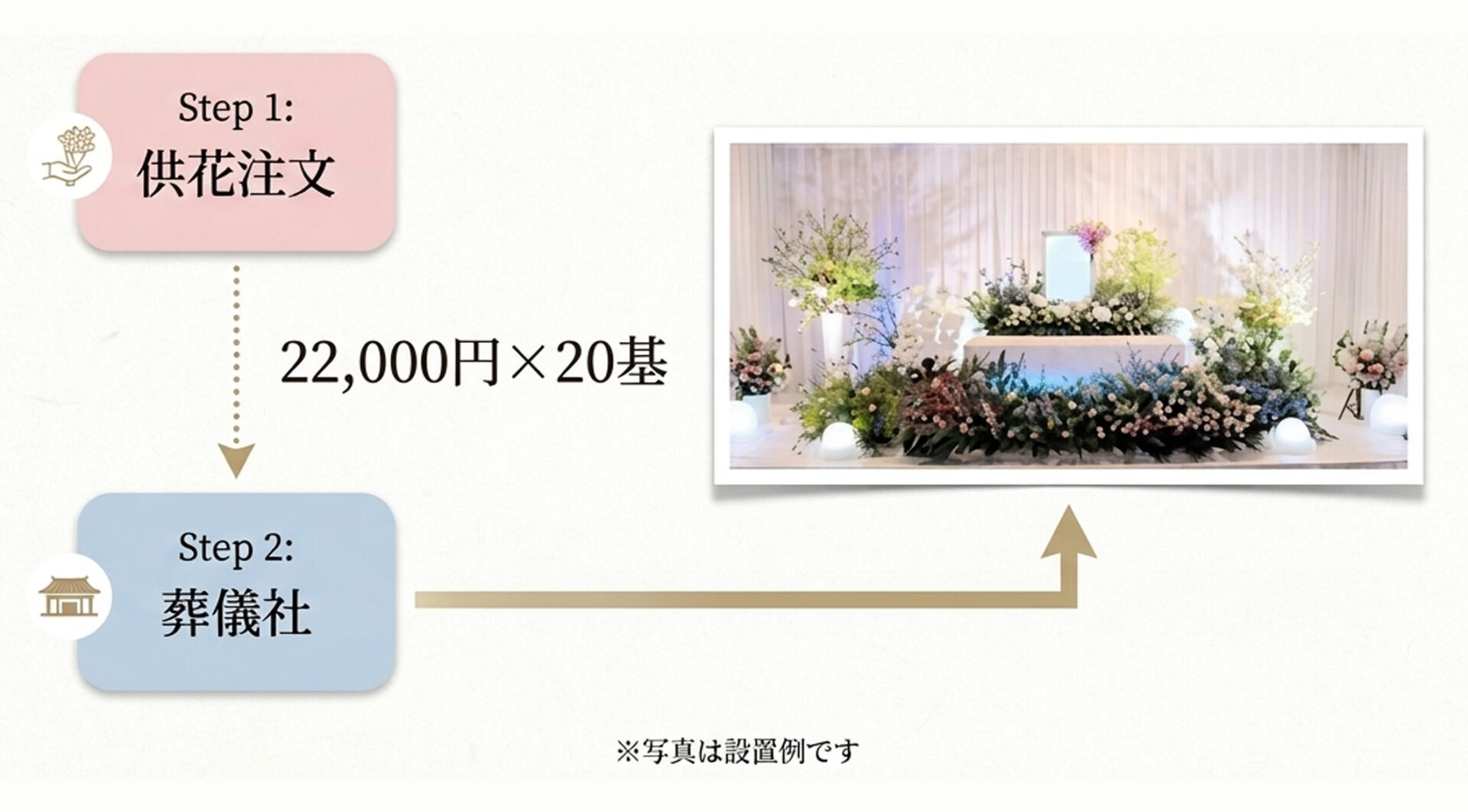 その合計額で花祭壇を装飾いたします。
